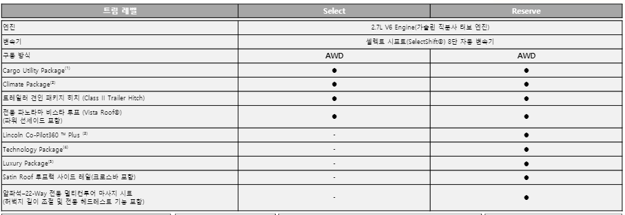 한국에 출시될 노틸러스는 2.7L Select 모델과 Reserve 모델 이렇게 두 가지의 트림으로 출시가 될 예정입니다.